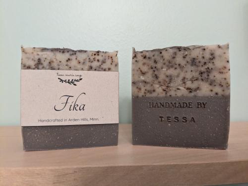 Fika $6 Available: 1 Collection: From the Café Ingredients: Water, Olive Oil, Coconut Oil, Palm Oil (sustainably sourced), Sodium Hydroxide, Avocado Oil, Mango Butter, Fragrance, Castor Oil, Sugar, Kaolin Clay, Buttermilk Powder, Sodium Lactate, Coffee Grounds, Colorant, Tussah Silk.